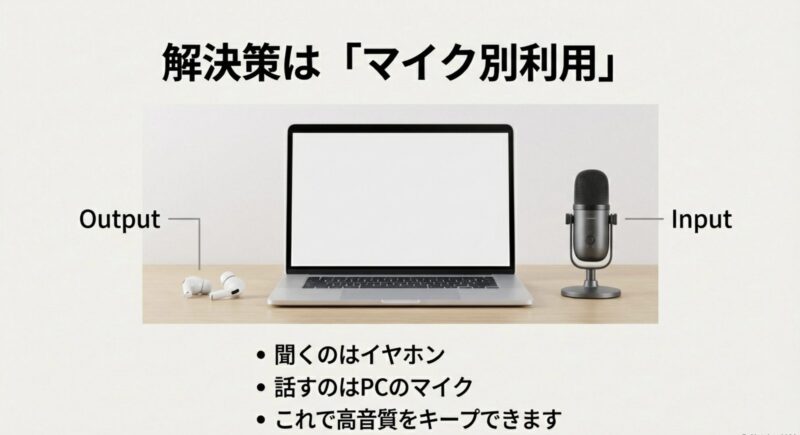 回避策はシンプルで、仕事用途なら入力(マイク)を別デバイスにするのがいちばん安定します。