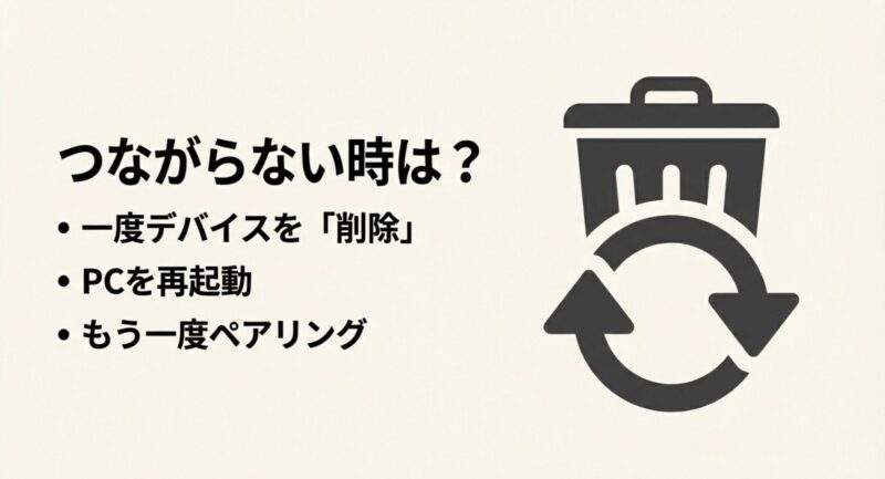 ここまでやっても安定しない場合は、PC側のBluetoothアダプターの相性やハード要因もあり得ます。