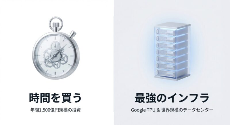 Googleは自社設計のAI専用チップ「TPU(Tensor Processing Unit)」を搭載したデータセンターを世界規模で展開しており、その処理能力と効率は世界一と言っても過言ではありません。