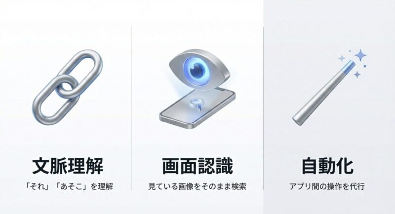 Geminiが入ることで、Siriは「ただの音声リモコン(アラームセット係)」から、真の意味での「パーソナル・エージェント(秘書)」へと進化します。