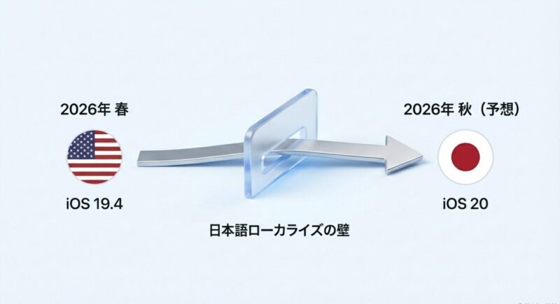 - 実装時期は2026年春(iOS 19.4頃)が有力だが、日本語対応はさらに半年程度遅れて2026年秋頃になる可能性がある。