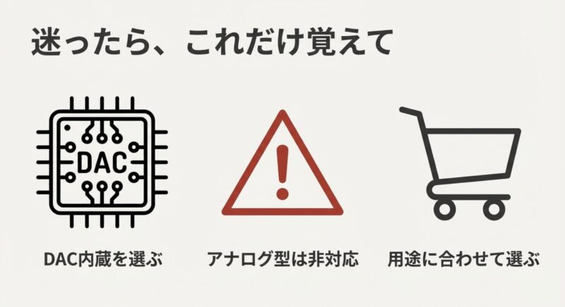 2. 「DAC内蔵なら何でもOK」ではない点も大事