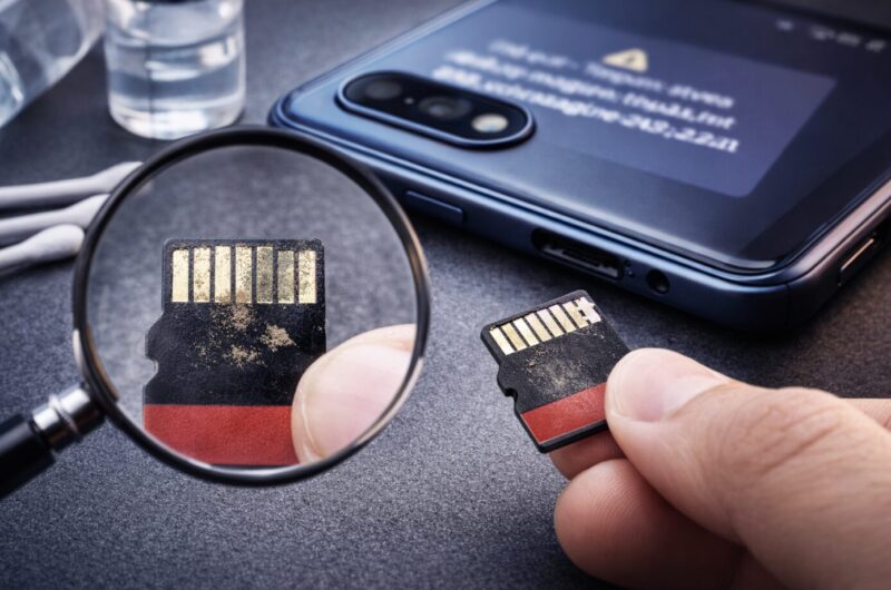 microSDカードの裏にある金色の端子は非常にデリケートで、指紋の油分や微細なホコリがつくだけで電気の流れが遮断され、スマホから「カードが刺さっていない」と判断されてしまうことがあります。