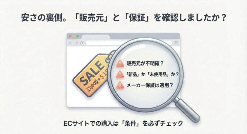 ここでのコツは、購入ページで「販売元(どこが売っているか)」と「保証(どこが面倒を見るか)」をセットで確認すること。