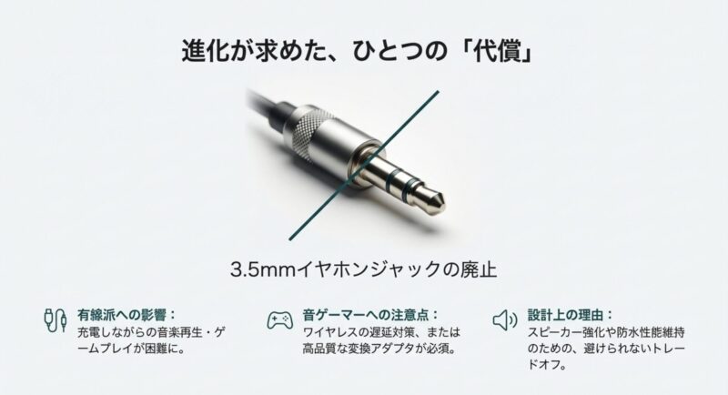 しかし、有線イヤホンを愛用している方にとっては大きな痛手であることは間違いありません。