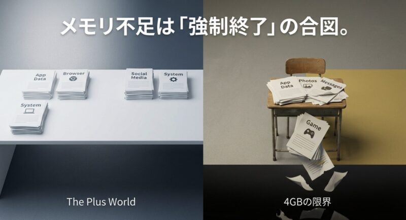 先ほど少し触れましたが、無印モデルのRAM 4GBというスペックが、具体的にどのようなトラブルを引き起こすのか、もう少し深掘りしておきます。