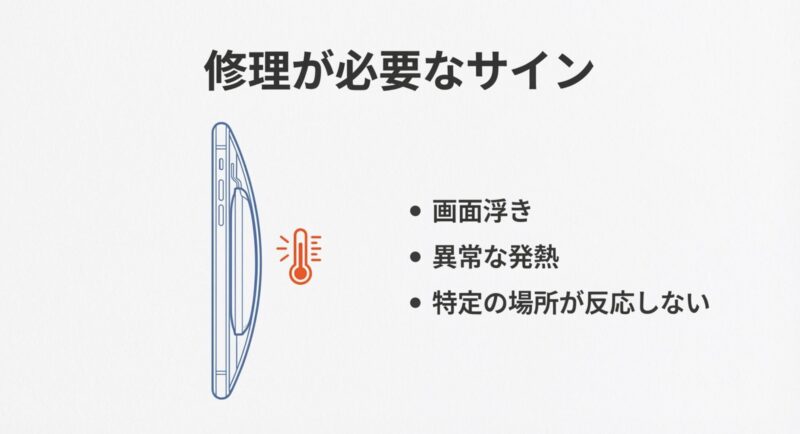 - 画面浮き・異常発熱など不安があるなら早めに相談