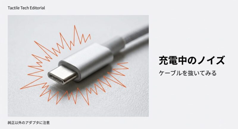 対策としては、まず充電ケーブルを抜いた状態で症状が止まるかを確認。