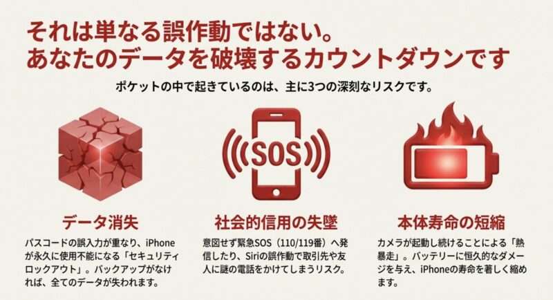 ポケットの中で起きているのは、単なる誤作動ではなく、あなたの思い出や重要データを消し去るカウントダウンなのです。