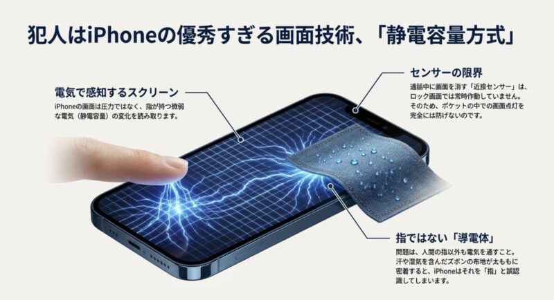この不可解なトラブルの正体を知るには、まずiPhoneの画面に使われている「静電容量方式タッチパネル」という技術を理解する必要があります。