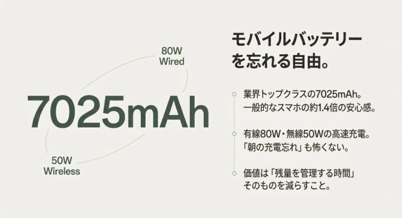- 7025mAhと80W無線50W