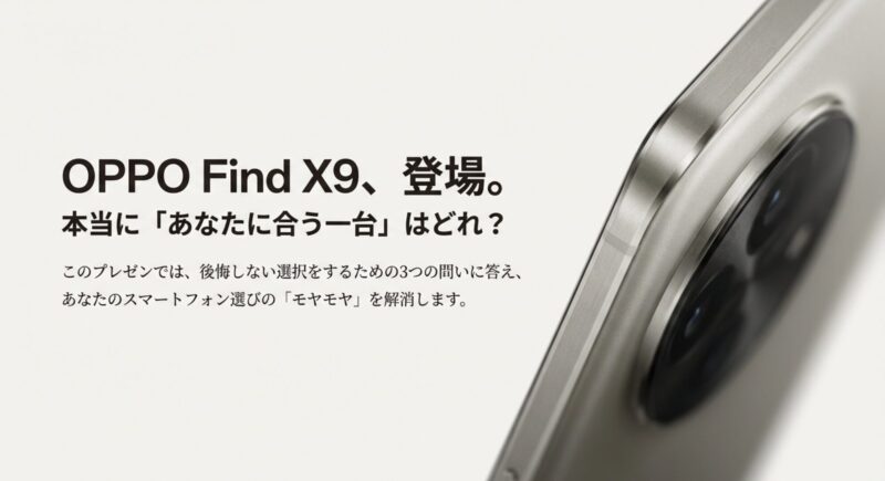 この記事では、OPPOのFind X9を検討するうえで「ここ押さえれば大丈夫」というポイントを、私の目線でサクッと整理していきます。