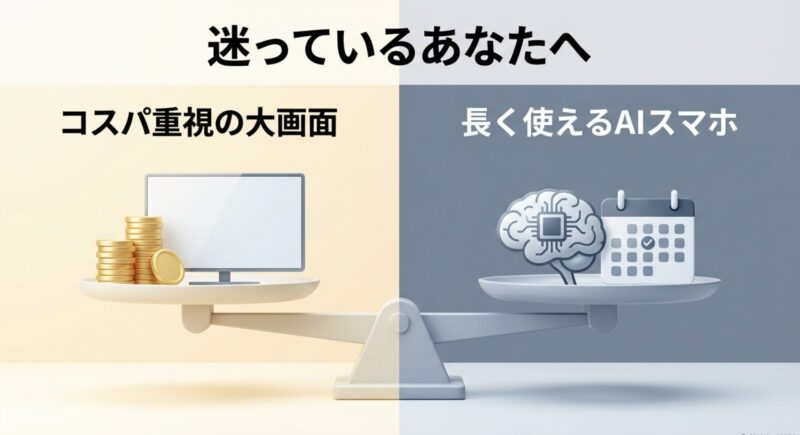 ここまで、スペック、価格、カメラ、バッテリー、そして隠れたデメリットに至るまで、様々な角度から徹底的に比較分析を行ってきました。