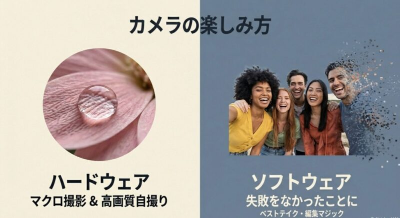 マクロレンズでミクロの世界を撮ったり、AIクリッピングでスタンプを作ったりと、遊び心のある使い方が好きな方にもぴったりです。