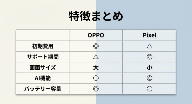 • OPPOのReno13AとPixel8aの比較結論