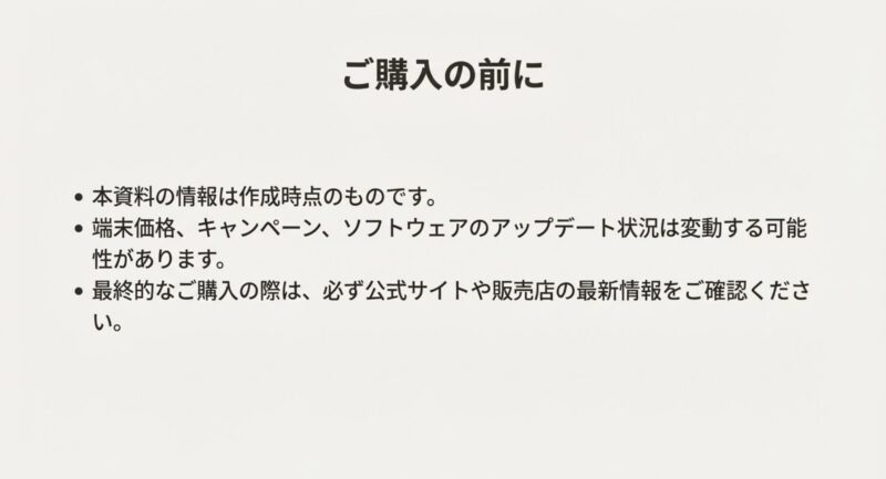 ただし、価格やキャンペーン、ソフトウェア更新状況は変わります。