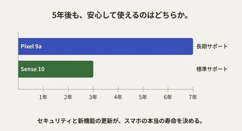 Pixel9aの強み:長期サポートで“買い替え圧”が減る