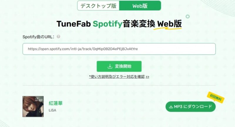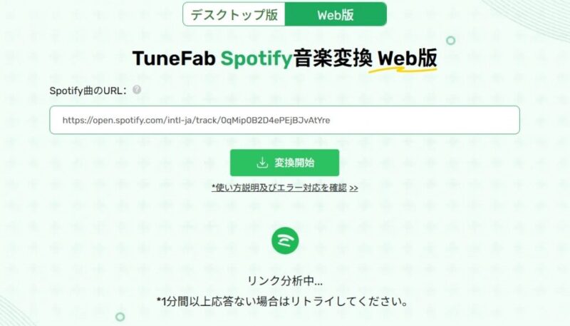 ここでは、「TuneFab Spotify音楽変換 Web版」を例にして、TuneFabオフラインツールの具体的な操作方法を解説します。