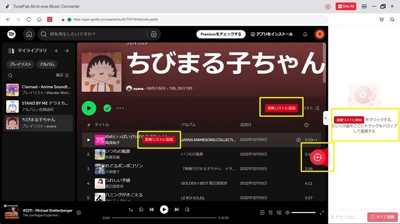 ステップ2、そして、変換したいSpotifyの曲やプレイリストを開いた後、「変換リストに追加」ボタンをクリックして、全曲は変換リストに追加されます。