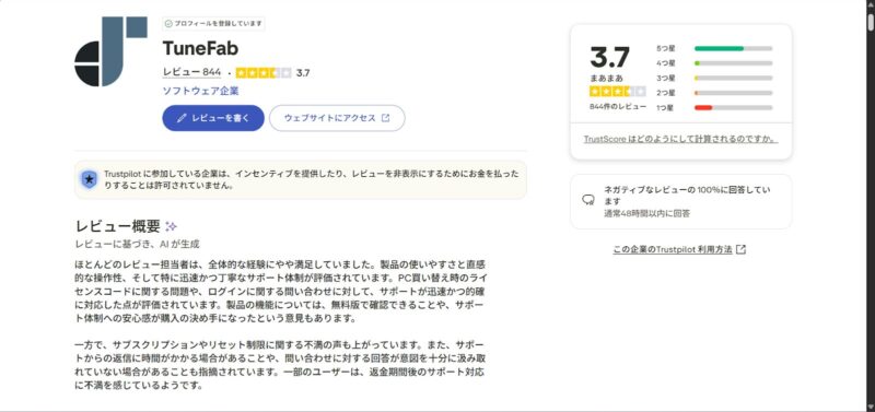 Trustpilotなどのサイトでの実際のユーザーレビューを分析すると、TuneFabソフトには以下のような評価が寄せられています。